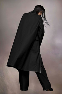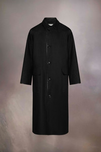The long coated cotton coat features a buttoned neck flap and side pockets. It is inspired by German photographer August Sander and his work “People of the 20th century”, and recreates the lived-in feeling of heritage tailoring by applying a shiny patina on collars, hems, and pockets, as if the piece has been worn and treasured for decades. Maison Margiela’s signature, the Four stitches, appear at the back; the opposite of a label. Product Details Item ID S51AH0196S78506961 Fabric: 100% cotton Coating: 100% polyurethane Secondary fabric: 100% cotton Trench coat in coated cotton with subtle used effect Horn button closure Button-tab neck Flap pockets Rough hem Four stitches at the back Made in Italy