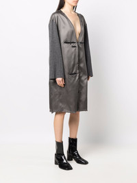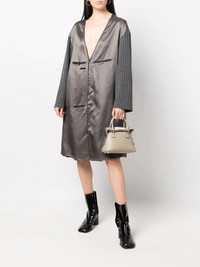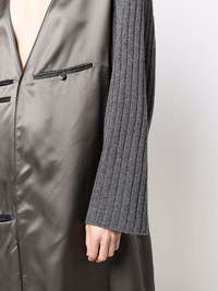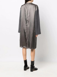 contrasting-sleeves V-neck dress grey wool two front welt pockets contrasting-fabric sleeves plunging V-neck drop shoulder long sleeves shift style straight hem Made in Italy Composition Wool 100%, Viscose 100% SIZE & FIT Model measurements Height 5 ft 10 in(1.78 m) Bust/Chest 31.49 in(80 cm) Hips 36.22 in(92 cm) Waist 25.59 in(65 cm) FittingInformation This piece fits true to size. We recommend you get your regular size Cut for a loose fit Made with a lightweight non-stretch fabric Washing instructions Dry Clean Only