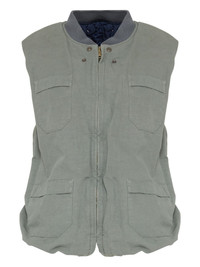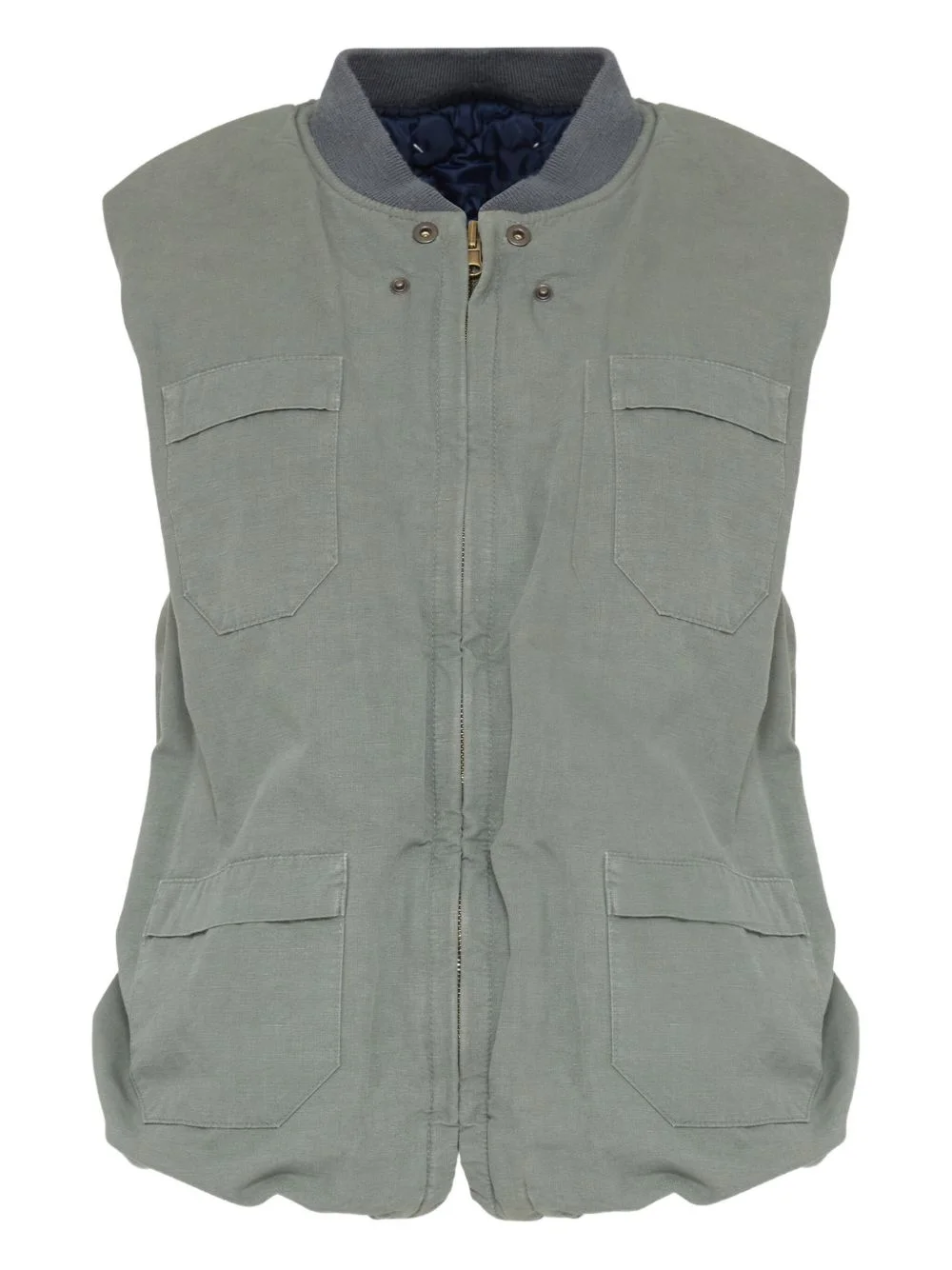cotton-blend waistcoat Highlights - Olive green - Front zip fastening - Two chest pockets - Adjustable drawstring at the hem - Round collar Made in Italy Composition Cotton 79%, Linen/Flax 21%