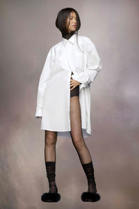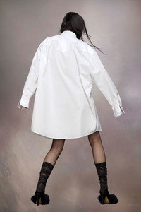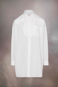 The shirt dress comes in cotton poplin with cotton piqué handmade stitching. It features a yoke, inspired by the famous ink blots of the Rorschach test, with swirling lines at the chest and shoulders to allude to the iconic yokes of the American West. The yoke showcases the Maison's décortiqué technique to reveal the underlying material of the garment, which exposes the process of construction – a new version of work-in-progress. Maison Margiela’s signature, the Four stitches, appear at the back; the opposite of a label. Product Details Item ID S51DT0014S43001100 Primary fabric: 100% cotton Secondary fabric: 100% cotton Cotton poplin and cotton piquè shirt Décortiqué details Unstitched details Hand-stitched basting stitches Mother of pearl button closure Mother of pearl buttoned cuffs Curved hem Four stitches at the back Made in Italy Oversize fit Model is 180cm tall and wears a size 40.