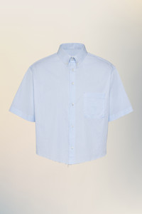 This short-sleeved shirt is cropped in length and designed with a classic collar and a reverse Decortique chest pocket. The raw hem introduces a subtle note of deconstruction, offering a quietly undone take on everyday shirting. Maison Margiela’s signature, the four stitches, appear at the back; the opposite of a label. Product Details Item ID S50DR0012M35529471F Primary fabric: 100% cotton Short-sleeved shirt in cotton with button-down collar Chest patch pocket and button front closure Raw-cut hem Four stitches at the back Made in Italy