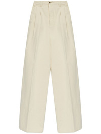 cotton wide-leg trousers Highlights - Light beige - Concealed fly and button fastening - Two side slash pockets - Two rear welt pockets - Pleat detailing Made in Italy Composition Cotton 100%