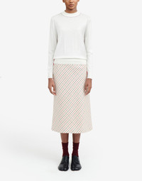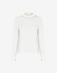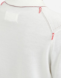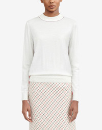 Sweater in ultralight Merino wool, revisiting hosiery details. It features contrast stitching and echoes the work-in-progress design code at the neckline and side seams. The Maison's four-stitches moniker adorns the back. Gauge 18. Made in Italy. Item details 100% Wool Brand logo