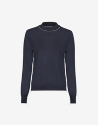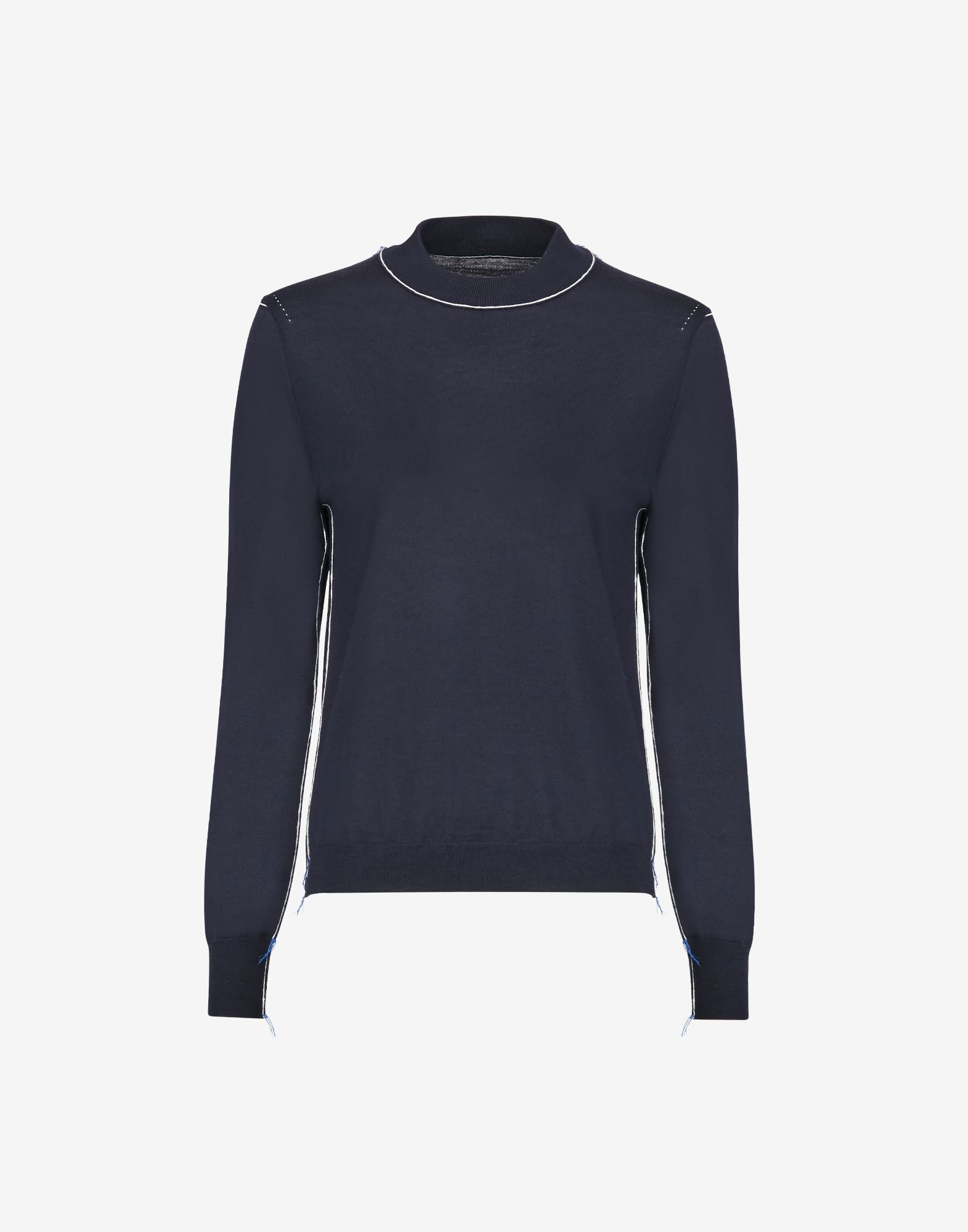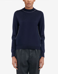 Sweater in ultralight Merino wool, revisiting hosiery details. It features contrast stitching and echoes the work-in-progress design code at the neckline and side seams. The Maison's four-stitches moniker adorns the back. Gauge 18. Made in Italy. Item details 100% Wool Brand logo
