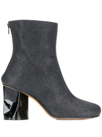 crushed heel ankle boots Maison Margiela’s work is often considered deconstructionist and largely occupied by the concepts of reinvention and reinterpretation. Case in point: these black crushed heel ankle boots. Featuring a round toe, a rear zip fastening, an ankle length and a heel with a crushed design. Made in Italy Composition Outer: Calf Leather 100% Lining: Calf Leather 100% Sole: Rubber 100% SIZE & FIT Measurement HEEL 3.54 in(9 cm) HEIGHT 5.11 in(13 cm)