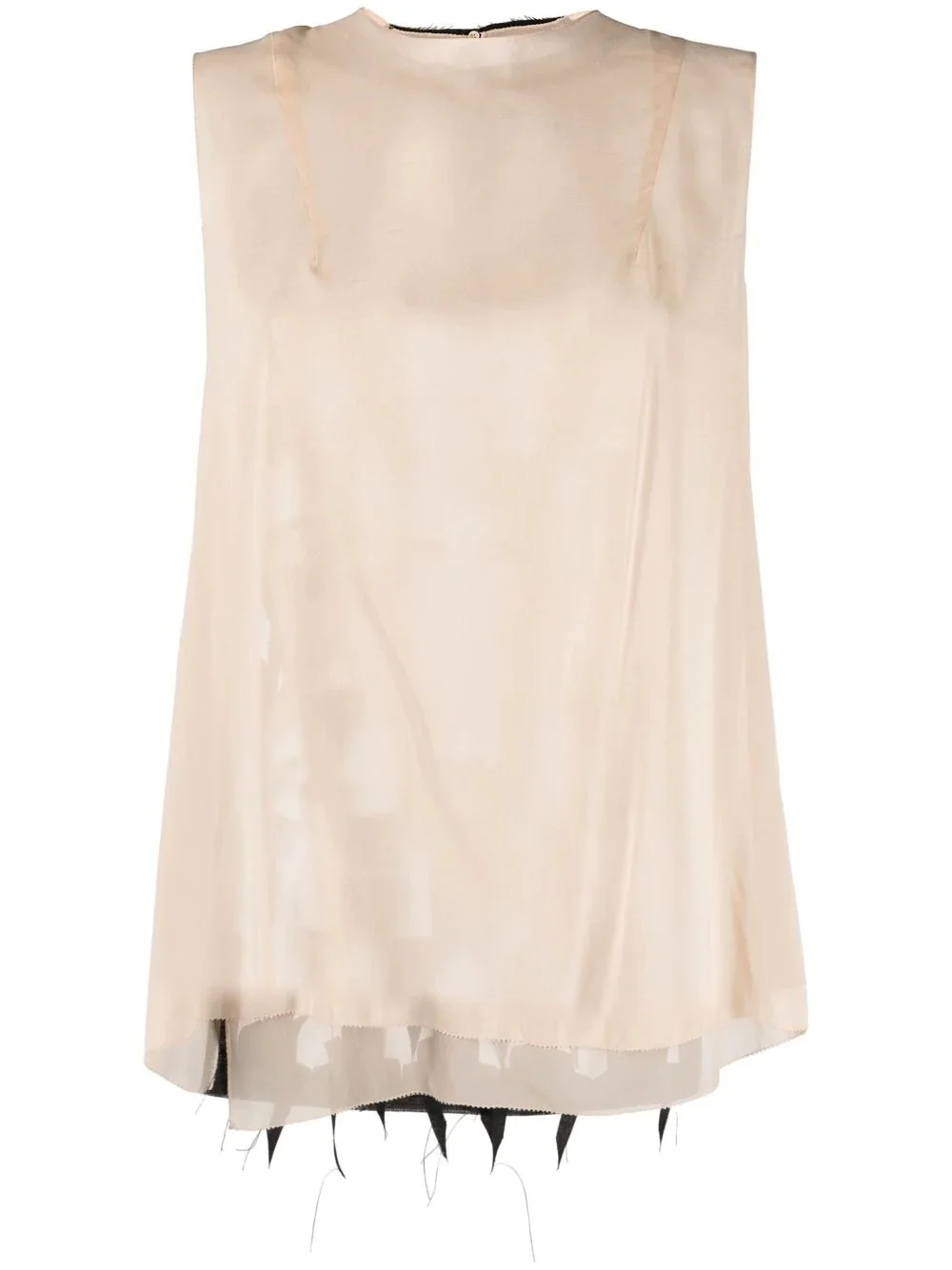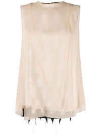 cut-out detail sleeveless blouse beige/black silk blend cut-out detailing draped design round neck sleeveless finished edge Made in Italy Composition Silk 90%, Mohair 60%, Virgin Wool 40%, Elastane 10% SIZE & FIT Model measurements Height 5 ft 10 in(1.78 m) Bust/Chest 33.07 in(84 cm) Hips 35.82 in(91 cm) Waist 25.98 in(66 cm) FittingInformation This piece fits true to size. We recommend you get your regular size Cut for a loose fit Made with a mid-weight fabric Washing instructions Dry Clean Only