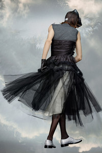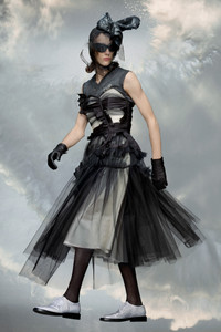 The midi dress in silk taffeta, toile and stiff tulle features a corset silhouette with sweetheart neckline, ruffled bonding and decorative corsages to the shoulder and hip. It presents the Maison's Décortiqué details, revealing the structure of the garment. It closes with a side zip. Maison Margiela’s signature, the Four stitches, appear at the back; the opposite of a label. Product Details Item ID S29DD0014S48403900 COED Fall Winter 2023 Primary Fabric: 100% Polyamide Secondary Fabric: 100% Silk Inside: 72% Polyester, 28% Silk Midi dress Stiff tulle small hole Glace taffeta Toile Sweetheart neckline Corset Side zip closure Décortiqué details Four stitches at the back Made in Italy Model is 6'2" tall and wears a size 40.
