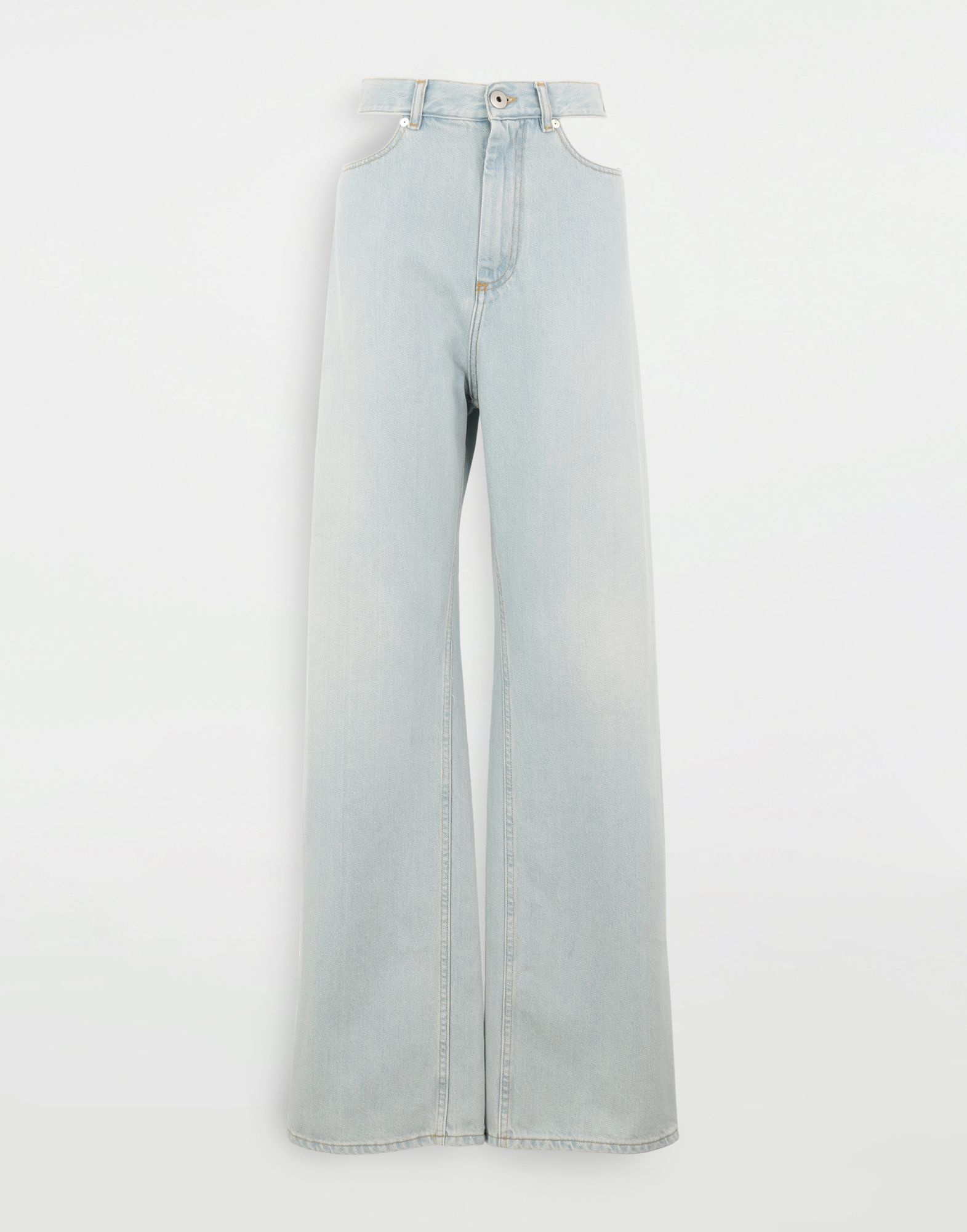 Relaxed-fit jeans with Décortiqué waistband cut at the pockets and back. They have a button, fly fastening, belt loops and back pockets. Item details 100% Cotton Denim Faded Light wash High waisted Button, zip Straight-leg pants Four pockets