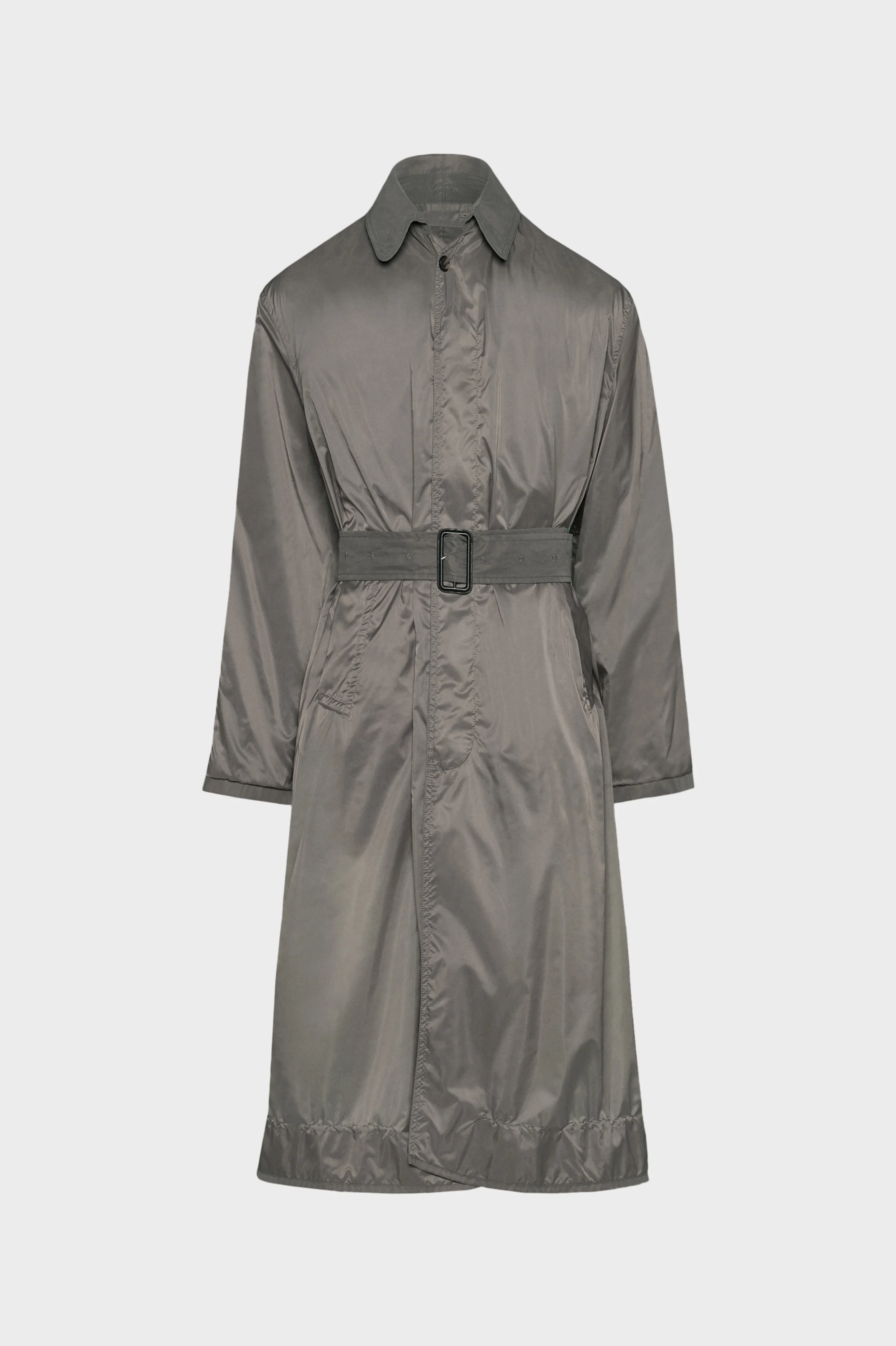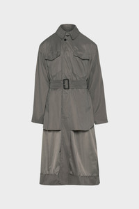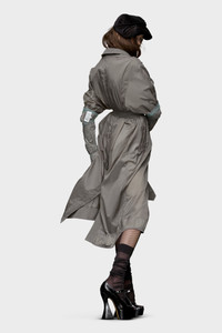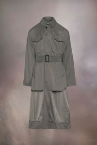 In a reversible style, the peached nylon blend trench coat is designed through the Maison's code of decortique, exposing the construction of the garment to create something strikingly new. With work-in-progress stitches with loose threads around the 'onion skin' panels, the layered coat is completed with a waist belt and chest pockets. Maison Margiela’s signature, the Four stitches, appear at the back; the opposite of a label. Product Details Item ID S51AH0194STZ121962 Primary fabric: 85% polyester, 15% nylon Secondary fabric: 100% nylon Trench coat in peached poly and soft nylon Reversible Decortique details Concealed single-breasted horn button closure Horn button-tab cuffs D-ring belt Flap pockets Side pockets Backslit Four stitches at the back Made in Italy Model is 180cm tall and wears a size 40.