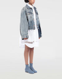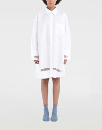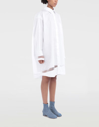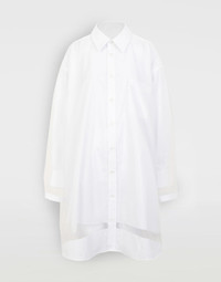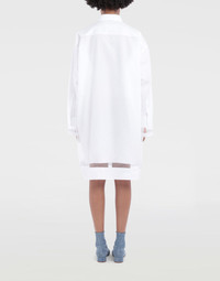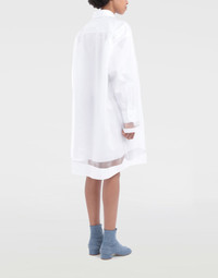 Oversized knee-length shirt dress with an overlay layer of tonal organza and Décortiqué construction details. It is buttoned at the front with a single patch pocket and classic collar. Item details Organza Classic Neckline Long sleeves Button closing