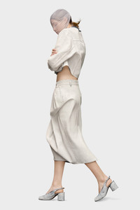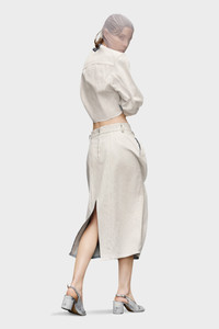 This below-the-knee skirt in cracked denim has a gathered front for a puffed silhouette with a back vent. At the back, four white stitches show the hand of the Maison: the opposite of a label. Product Details Item ID SI0MA0005S30561967 Composition: 100% Cotton Pleated midi skirt Handpainted coating Belt loops Side pockets Back zip closure Back slit Four stitches at the back Made in Italy The model is 5'10" tall and wears size 40.