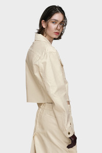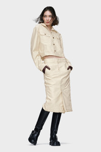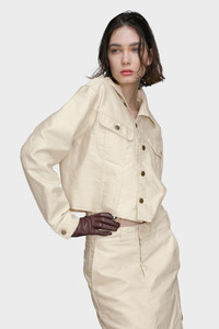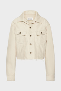 Cut in cotton moleskin, this cropped jacket distils the Maison’s deconstructive approach into a concise silhouette. Raw hems and visible seams reinterpret classic workwear through altered proportion and minimal finish. Maison Margiela’s signature, the four stitches, appear at the back; the opposite of a label. Product Details Item ID S51AM0507M35539112 Primary fabric: 100% cotton Cropped denim jacket Pointed collar Button closure at the front Flap chest pockets with button closure Raw-cut hem Buttoned cuffs Four stitches at the back Made in Italy