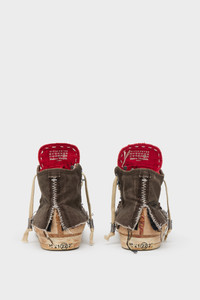 A symbol of impermanence and identity, these Love to Death sneakers are crafted in layered canvas, sliced and frayed to reveal traces of wear. The design distorts classic construction with exposed stitching, distressed edges, and a handmade effect across every panel. A tactile manifestation of memory in motion. Product Details Item ID S39WS0129P7454HB129 Upper: 100% Cotton Lining: 100% Cotton Inside: 100% Goat Leather Sole: 100% Rubber High-top sneakers in layered canvas with visible distressing Cut-away material and exposed seams Contrast tongue and topstitching Rubber toe caps with aged effect Lace-up closure Numeric signature label on the inner tongue