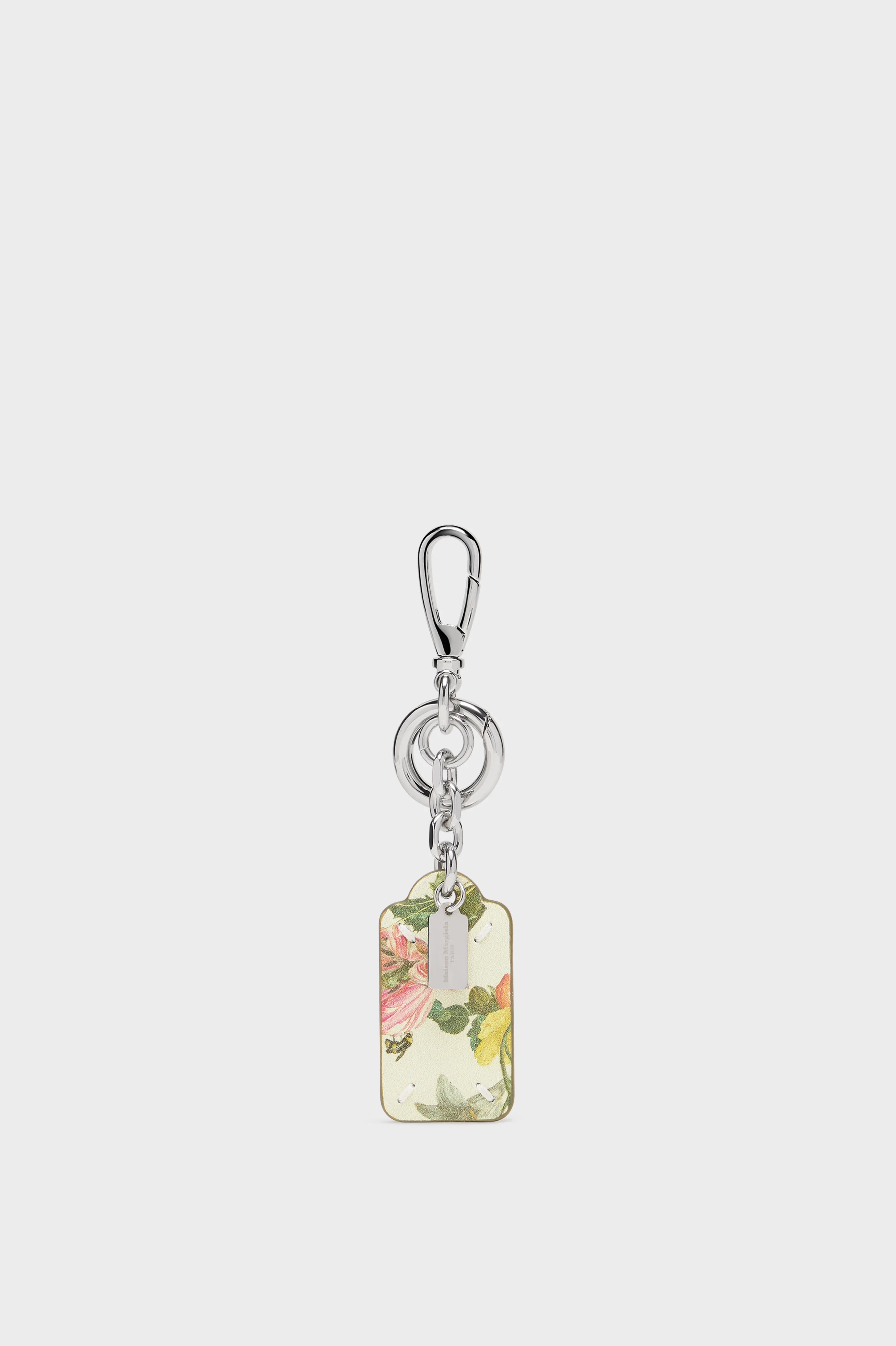 This Double Tag Keyring Small is crafted in printed leather, the twin tag silhouette is articulated with a chain, ring, and clasp for everyday attachment. The surface features botanical motifs drawn from the Artisanal collection, inspired by 17th-century still life paintings by the Dutch Masters. The Maison Margiela signature is placed at the front, while the back is finished with the Maison’s signature four stitches; the opposite of a label. Product Details Item ID SA2UA0017P8979HB353 Body: 100% calf leather Contrast: 100% calf leather Metallic parts: 100% brass Floral printed leather Engraved brand logo Four stitches at the back Made in Italy