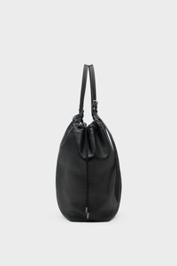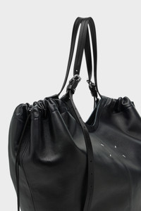 Crafted in soft nappa leather, this oversized shopper merges volume with structure. The gathered top softens its angular form, while belt-inspired leather handles lend a utilitarian edge. A detachable pouch tucks inside, designed for everyday essentials. At the front, the Maison’s signature four stitches appear; the opposite of a label. Product Details Item ID SB1WC0032P8832HB323 Body: 100% ovine leather Contrast: 100% calf leather Inside: 100% ovine leather Lining: 50% polyamide-nylon 50% polyurethane Accessories: 100% polyester Hardware: 100% brass, 100% zama Adjustable shoulder straps Engraved brand logo on pouch Drawstring closure Four stitches at the back Inside logo stamping Made in Italy