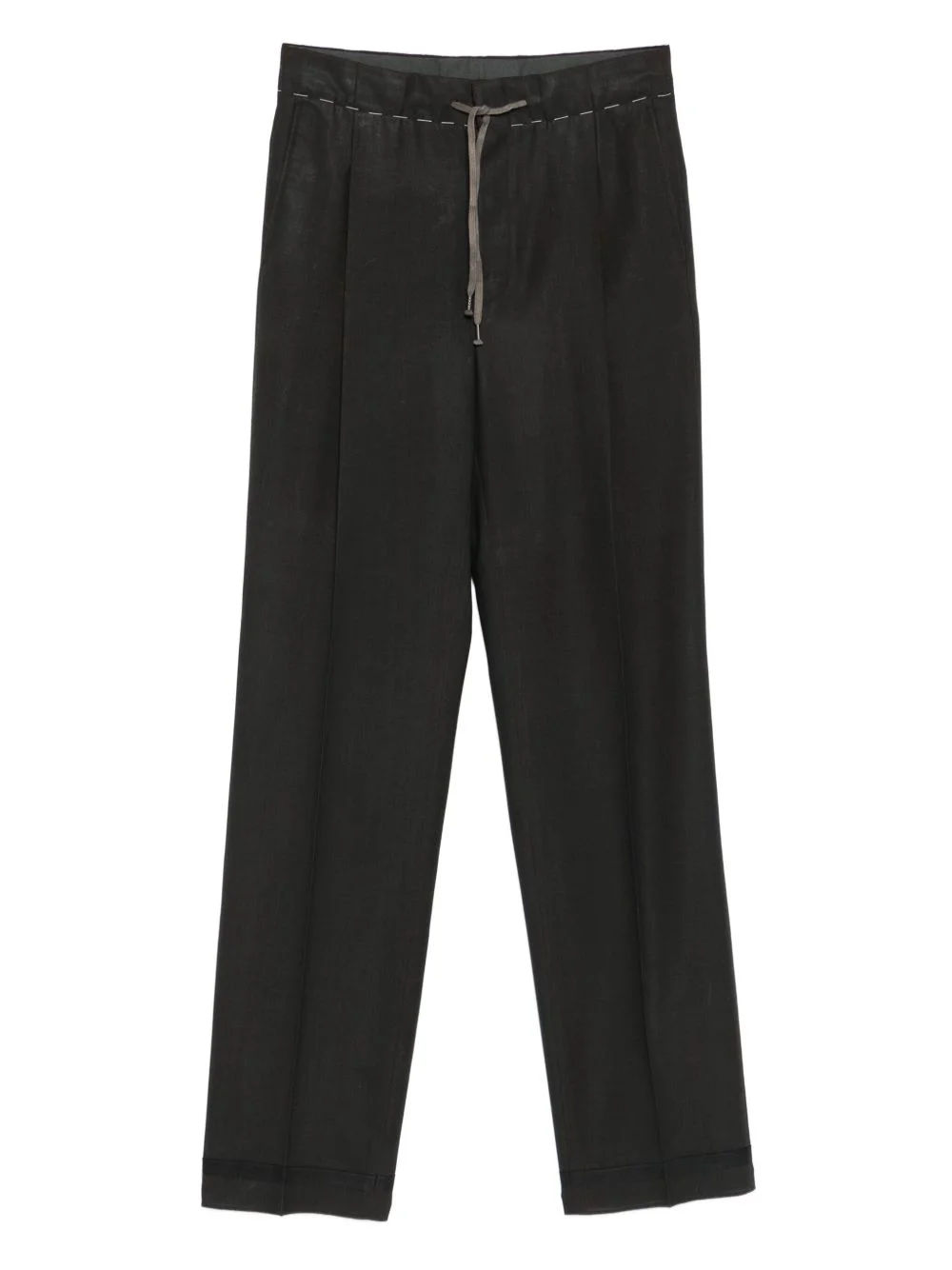 drawstring-waist trousers Highlights - Brown - Drawstring waist - Concealed front button, hook and zip fastening - Pleat detailing - Two rear welt pockets Made in Italy Composition Outer: Wool 100% Lining: Cotton 100% Washing instructions Read Manufacturer Guidelines