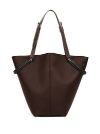 Dress-age leather tote bag Highlights - Brown - Pebbled finish - Dual-wear strap - Trapezoid shape - Adjustable leather strap Made in Italy Composition Outer: Calf Leather 100% Lining: Goat Skin 100%, Polyester 100% SIZE & FIT Measurement HEIGHT 9.84 in(25 cm) WIDTH 16.92 in(43 cm) HANDLE 2.36 in(6 cm) DEPTH 7.08 in(18 cm)
