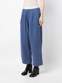 drop crotch cropped trousers Highlights - Cobalt blue - Cotton - Striped lining - Drop crotch - Elasticated waistband - Turn-up hem - Cropped leg Made in Italy Composition Body: Cotton 100% SIZE & FIT Model measurements Height 5 ft 10 in(1.78 m) Bust/Chest 30.31 in(77 cm) Hips 34.64 in(88 cm) Waist 24.01 in(61 cm) FittingInformation Designed for a tapered fit, these trousers allow for a close fit at the waist and a loose unrestricted fit over the leg with a closer fit towards the ankle The elasticated waist allows for a comfortable fit Made from a midweight non-stretch fabric This piece fits true to size – take your usual size Washing instructions Machine Wash