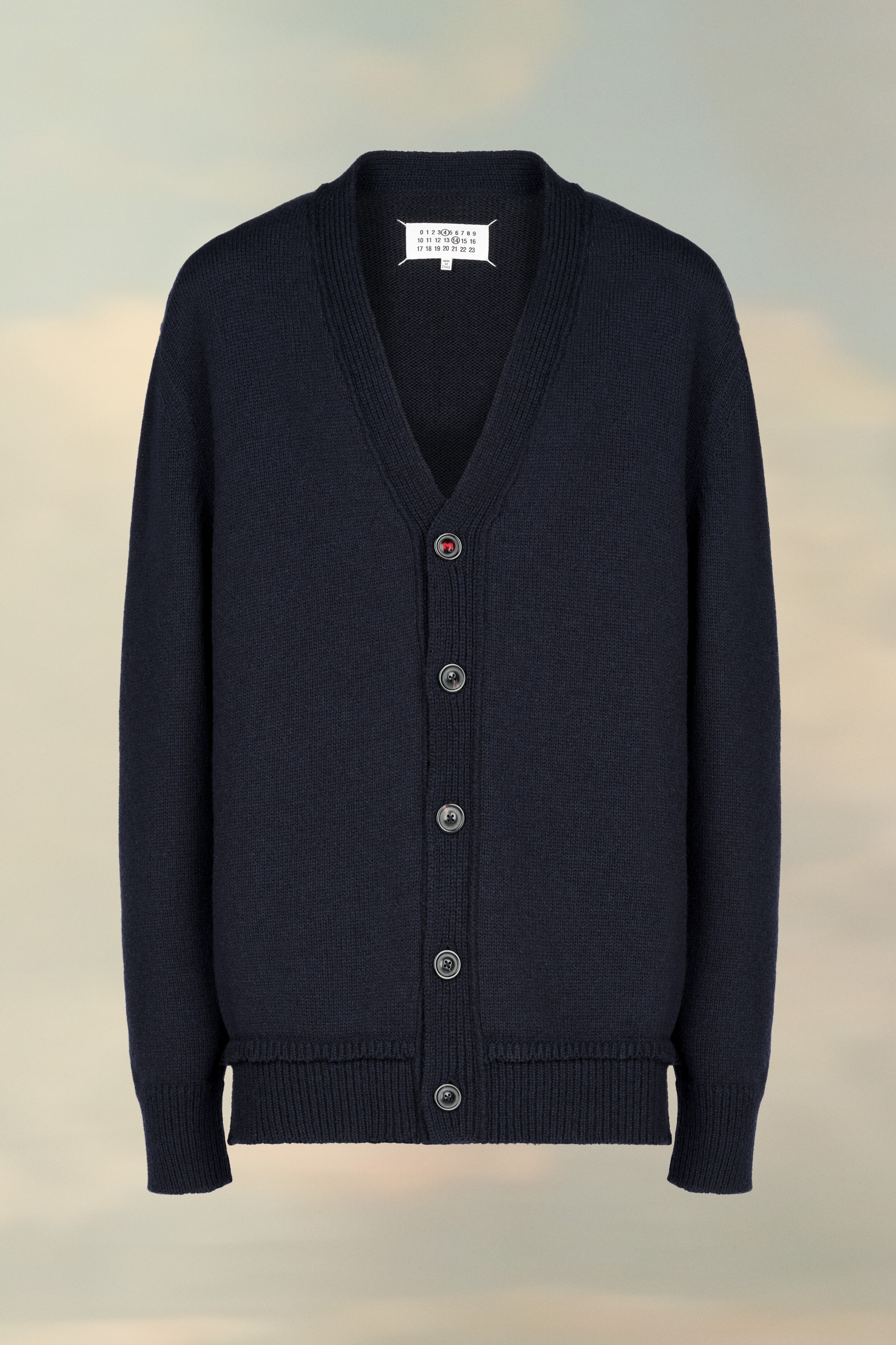 This low V-neck knit cardigan with long sleeves and ribbed trims features tonal elbow patches. At the back, four white stitches show the hand of the Maison: the opposite of a label. Gauge 5. Product Details Item ID SI1GP0003S18064511F Composition: 46% Wool, 31% Linen, 23% Cotton Cardigan Horn button closure with red M embroidery Ribbed trims Suede elbow patches Décortiqué details Four stitches at the back Gauge 5 Made in Italy The model is 6'2" tall and wears size S.