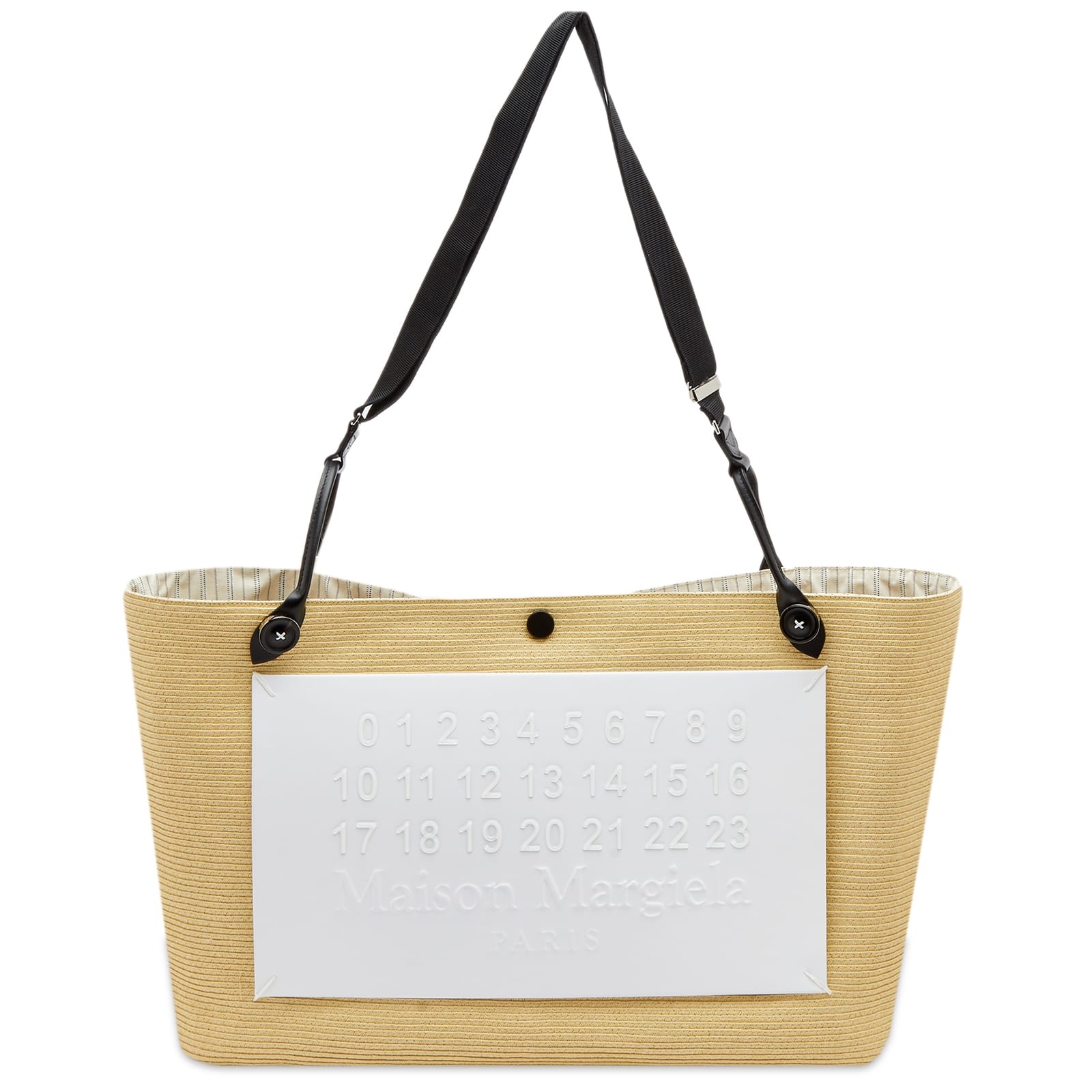 Under the creative direction of John Galliano, Maison Margiela continues to push boundaries in the world of luxury fashion. With basics that are distinctive as the avant garde, this extra large tote bag is adorned with a patch featuring the brand’s numeric logo on the front. - Cellulose - Snap Button Closure - Leather Straps - Main Compartment