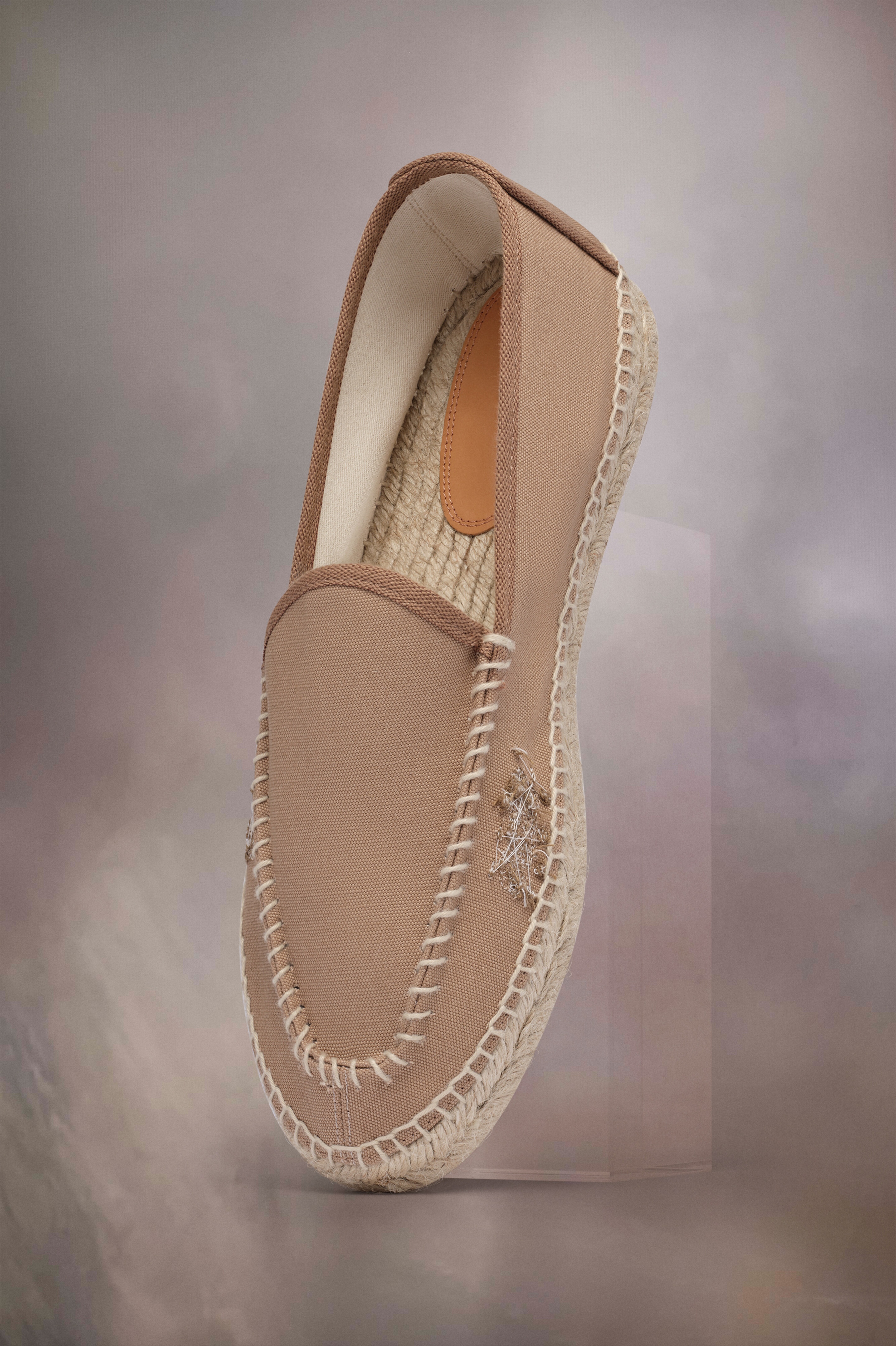 Featuring embroidery scribble on canvas, the slip-on espadrilles have exposed stitching and a flatform sole. The back features a single white stitch showing the hand of Maison Margiela.