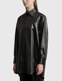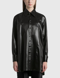 - Maison Margiela - Faux Leather Shirt - Point collar - Button closure - Buttoned cuff - Curved hem - Color: Black - Material: 61% Acetate, 39% Polyamide - See more Shirts and Clothing SIZING - Model wears size 36 - Model measures: Height 181cm, Chest 33”/84cm, Waist 24”/61cm, Hip 35”/90cm