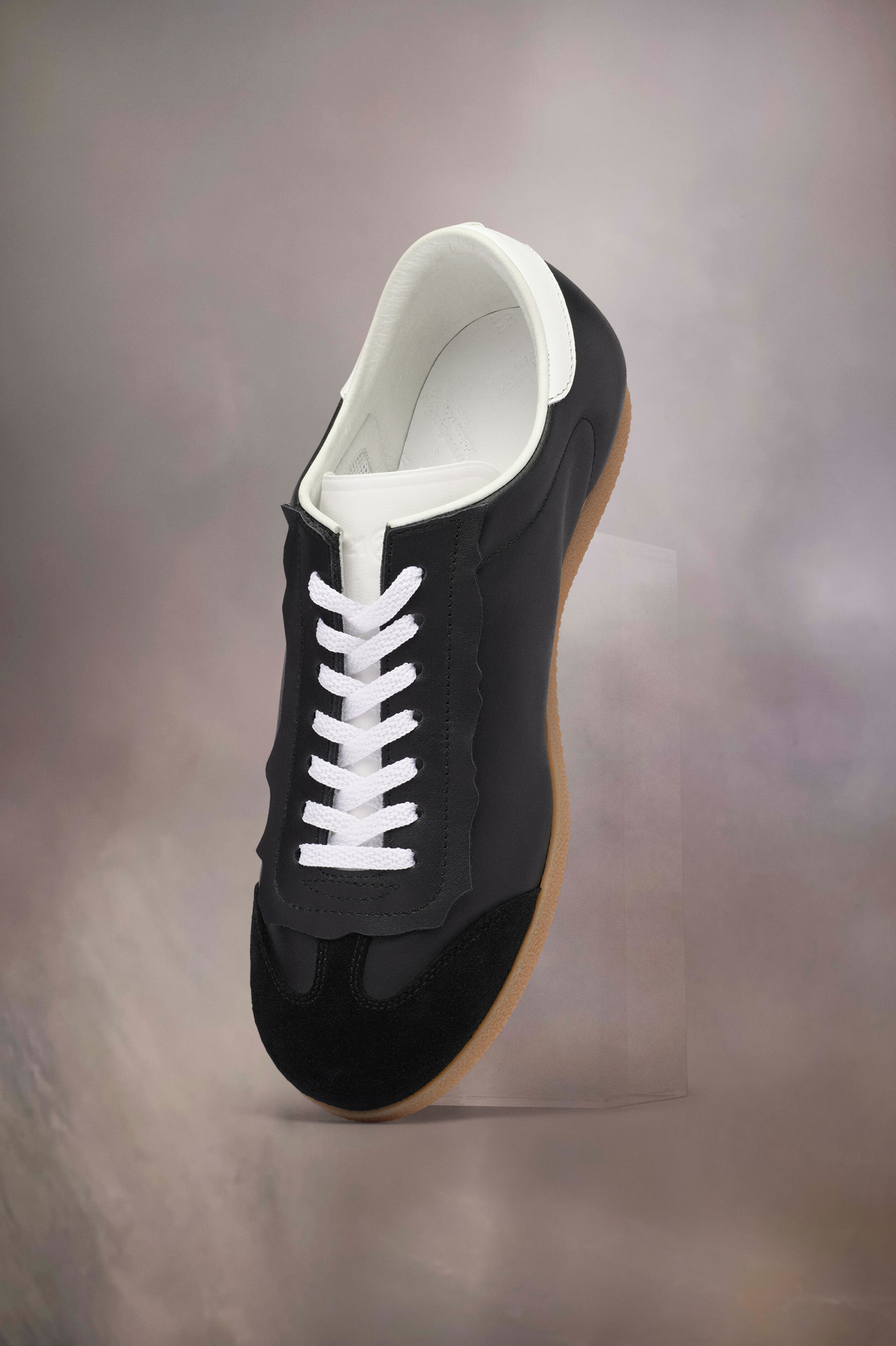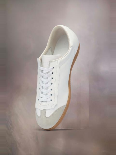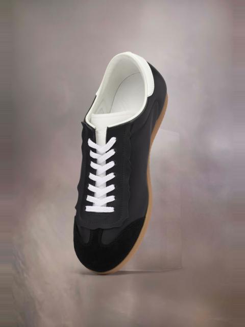 In calfskin and suede, the Featherlight sneaker has a flat sole and contrast tongue and heel. The back features a single white stitch showing the hand of Maison Margiela. Product Details Item ID S58WS0236P4308T8013 Upper: 100% calf leather Lining: 100% polyester Sole: 100% rubber Calf leather sneakers Lace-up Décortiqué lasered details Logo label on the tab White stitching at the back All-over logo insole Made in Italy A digital certificate provided by the Aura Blockchain Consortium guarantees the authenticity of this product. Discover more on auraluxuryblockchain.com/#about