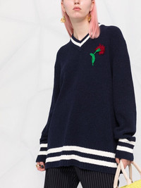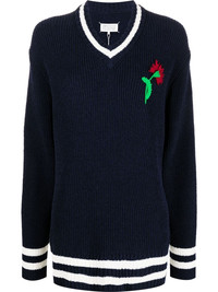 floral-embroidered V-neck jumper