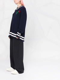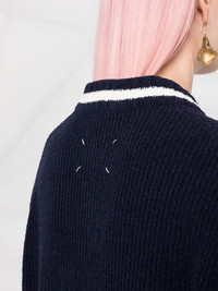 floral-embroidered V-neck jumper Spun from a cotton blend with a ribbed knit construction, this V-neck jumper from Maison Margiela is decorated with an embroidered flower at the chest and finished with the brand's signature four-stitch logo to the rear. Made in Italy Composition Viscose 42%, Polyamide 33%, Cotton 13%, Modal 9%, Polyester 3% SIZE & FIT Model measurements Height 5 ft 9 in(1.75 m) Bust/Chest 31.49 in(80 cm) Hips 34.64 in(88 cm) Waist 24.01 in(61 cm) FittingInformation This piece fits true to size. We recommend you get your regular size Cut for an oversized fit Made with a mid-weight fabric Washing instructions Dry Clean Only