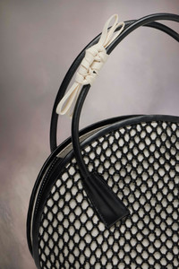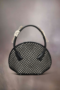 At once deconstructed yet complete, the small Fortune bag is crafted from net, toile and calf leather. The short rounded handles are wrapped in the contrast toile, elevating the humble everyday fabric as part of the Maison’s Exercise in Style study. Studs on the base allow the bag to stand, with the classic logo appearing inside. Maison Margiela's signature, the four stitches, appear at the back; the opposite of a label. Product Details Item ID SB1WD0046P7270HA758 Body: 100% Viscose-Rayon Contrast: 100% Calf Leather Application: 100% Cotton Inside: 50% Polyamide-Nylon 50% Polyurethane Lining: 100% Cotton Inside: 100% Calf Leather Metallic hardware Handbag in net, toile and calf leather Tie closure Inside logo stamping Inside pocket Clean with a gentle cleaner Made in Italy