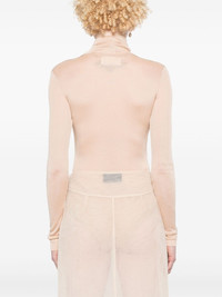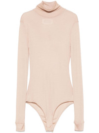 four stitch-logo bodysuit Highlights - Light beige - Stretch-design - Semi-sheer construction - Roll neck - Long sleeves - Signature four-stitch logo - Bottom press-stud fastening - Just a reminder that this piece must be tried on over your own garments. Made in Italy Composition Viscose 66%, Polyamide 34% SIZE & FIT Model measurements Height 5 ft 9 in(1.75 m) Bust/Chest 34.64 in(88 cm) Hips 36.61 in(93 cm) Waist 26.37 in(67 cm) FittingInformation Designed for a close fit throughout Made from a lightweight non-stretch fabric, this piece offers minimal elasticity when worn This piece fits true to size – take your usual size