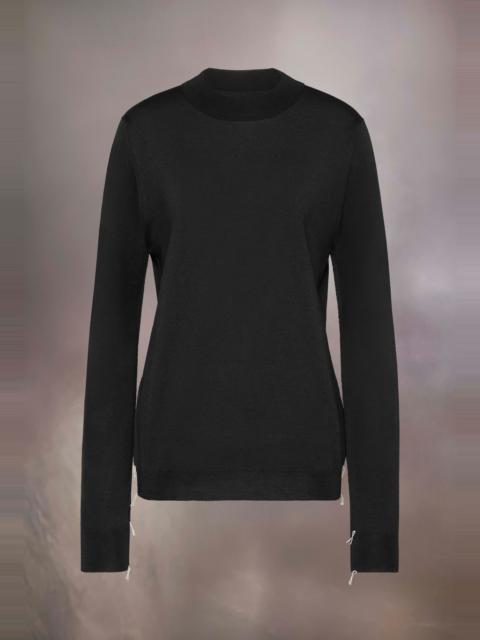 Featuring the Maison's Work-in-progress stitches at the shoulders and loose threads for an unfinished aesthetic, the classic crew-neck sweater is crafted from fine Merino wool. Maison Margiela's signature, the Four stitches, appear at the back; the opposite of a label. Gauge 18. Product Details Item ID S51HL0016M13057860M Composition: 100% wool Gauge 18 Fine merino wool jumper Crewneck Basting stitches on shoulders and cuffs Ribbed trims Four stitches at the back Made in Italy