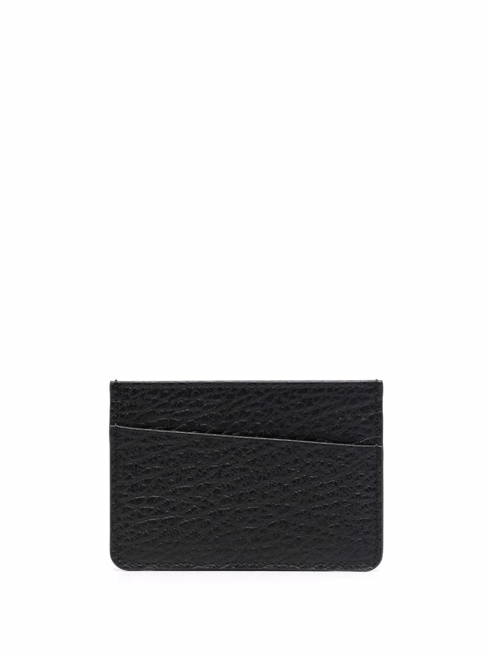 four-stitch leather card holder Highlights - Black leather asymmetric card holder from maison margiela featuring grained texture, tonal stitching and card slots. Made in Italy Composition Outer: Calf Leather 100% Lining: Viscose 100% SIZE & FIT Measurement LENGTH 2.75 in(7 cm) WIDTH 3.93 in(10 cm)