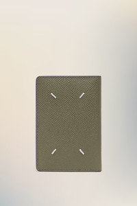 The cardholder has four card slots and sections for notes. It is crafted from grainy leather with the logo inside. Maison Margiela's signature, the four stitches, appear on the back; the opposite of a label. Product Details Item ID S55UI0203P4745T7429 Material Composition Primary Fabric: 100% Calf Leather Inside: 100% Calf Leather Lining: 100% Viscose Grainy leather card holder Two flat slip pockets Four interior card slots Maison Margiela signature at the interior Four stitches at the back Made in Italy
