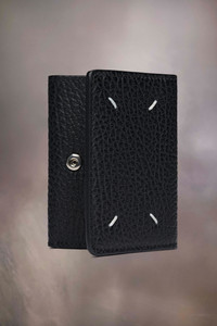 Crafted from embossed grainy leather, the wallet has an envelope pocket, snap button closure and inner numeric logo. Maison Margiela's signature, the four stitches, appear at the back; the opposite of a label. Product Details Item ID S36UI0416P4455T8013 Outer: Grainy calf leather with soft touch Lining: Viscose Snap button closure front pocket Four stitches at the back Snap button closure Inside logo stamping Flat pocket Two inside card slots Clean with a specific leather cleaner product and a damp microfiber cloth Made in Italy 7 cm x 10 cm/2,5 in x 4 in (Length x Height)