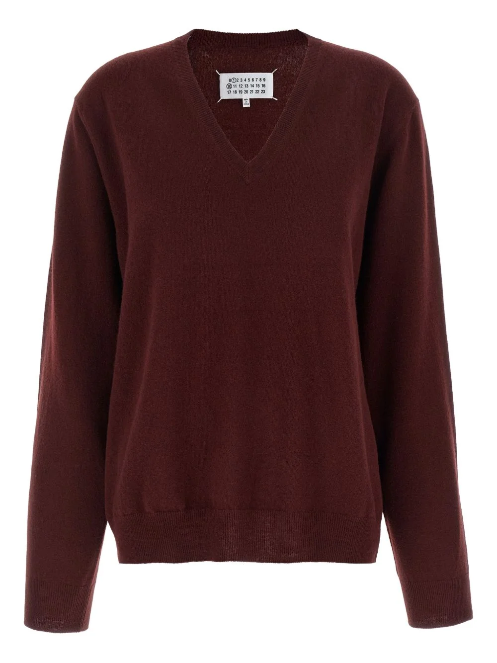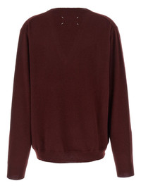 chain knitted V-neck sweater Highlights - Red - Knitted fabric - V-neck - Long-sleeves - Ribbed cuffs - Dropped shoulder - Four stitches at back Made in Italy Composition Virgin Wool 100% Washing instructions Read Manufacturer Guidelines