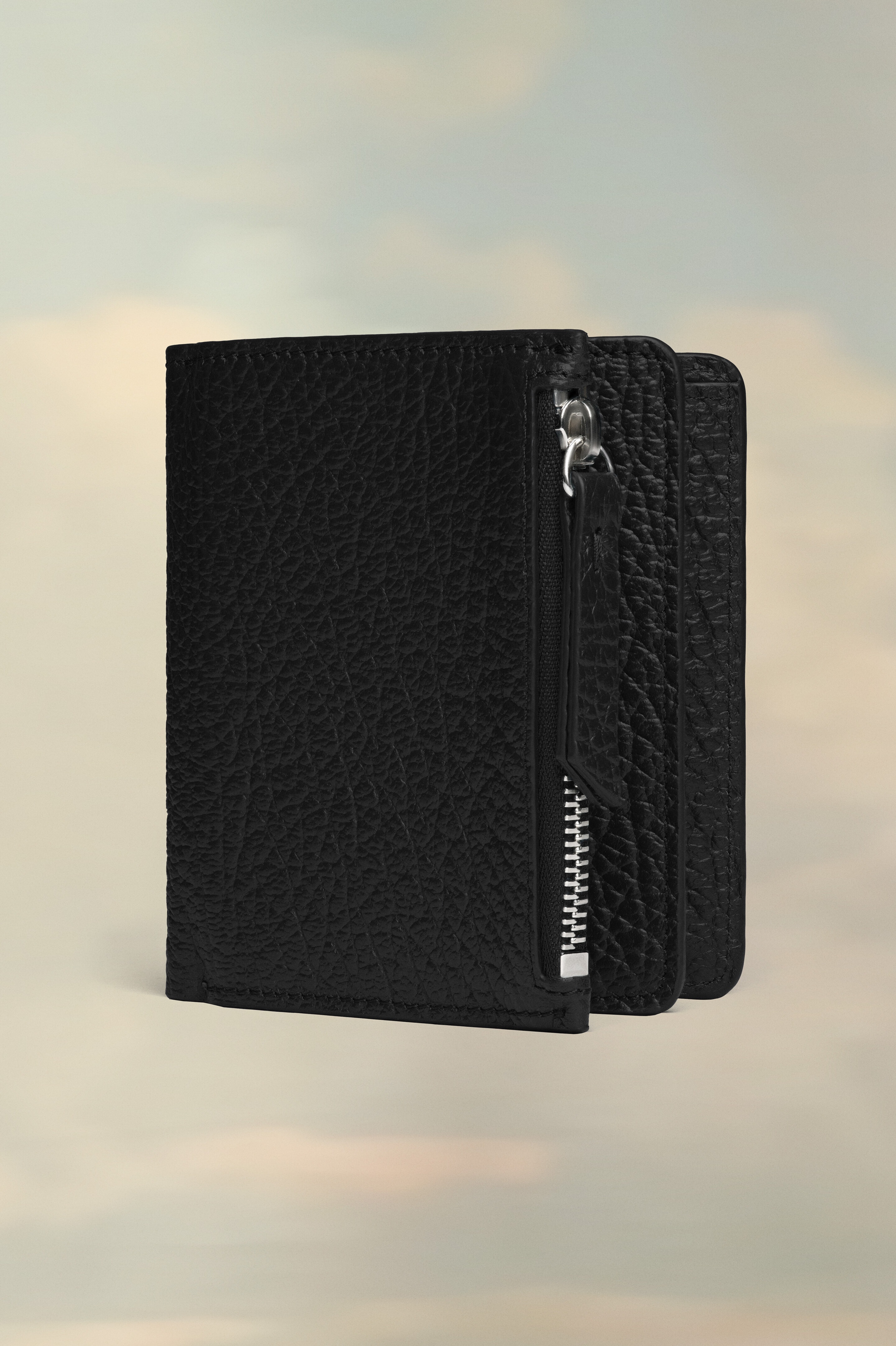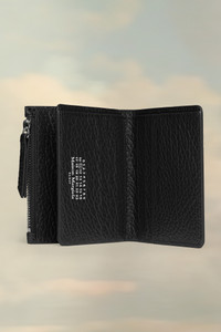 Crafted from grainy leather, the leather flap wallet has a zipped section and card holder with an embossed logo. Maison Margiela's signature, the four white stitches, appear at the back; the opposite of a label.