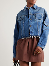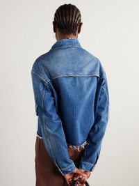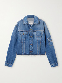 Maison Margiela's denim jacket features irregular pockets and a storm flap, adding a contemporary twist to a classic design. It's been made in Italy and has dropped shoulder seams and a frayed hem. Note the house's signature four stitches at the back. Size & Fit - Fits true to size, take your normal size - Designed for a relaxed fit - Mid-weight, non-stretchy denim - Model is 177cm/ 5'10" and is wearing an IT 40 Model measurements: - Bust: 75cm/ 29.5" - Waist: 60.5cm/ 24" - Hip: 88.5cm/ 35" Details & Care - Blue denim - Button fastenings through front - 100% cotton - Machine wash