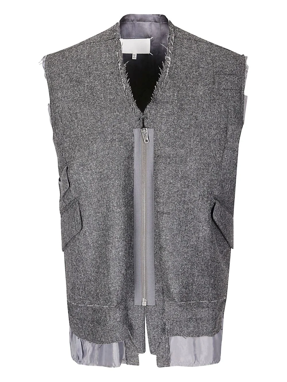 frayed-edges gilet Highlights - Grey - Wool - Frayed edges - Zip fastening - Welt pockets - Sleeveless Made in Italy Composition Wool 100% Washing instructions Read Manufacturer Guidelines