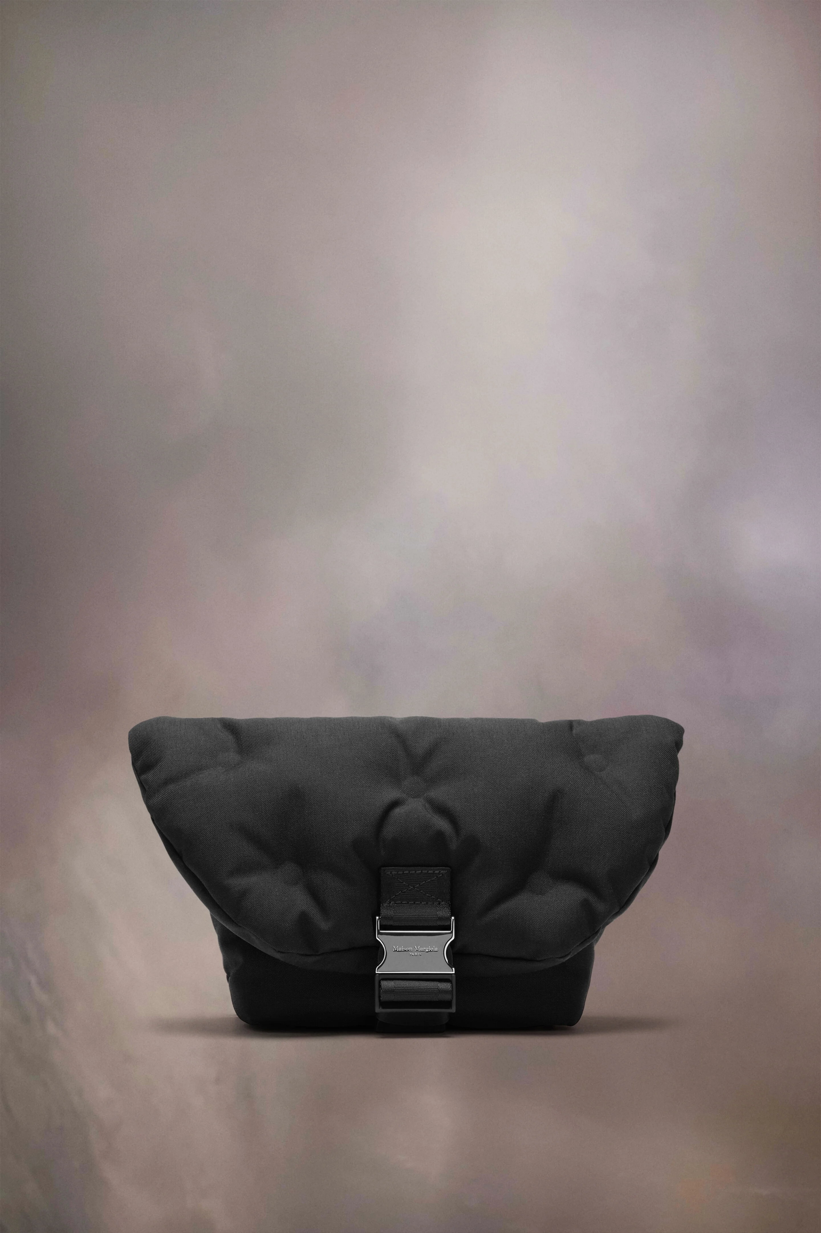 The Glam Slam cycle messenger small is crafted from quilted cordura. The Glam Slam debuted in the SS18 show and has a quilted design which mimics matelassé – the style of hand-stitched quilts created in Marseilles, France. The concept reflects the Maison’s notion of unconscious glamour and evokes its association to comfort, following the study into dressing and travelling rituals worldwide. This style features a cross-body strap, and is adorned with the numeric logo label on the flap. Product Details Item ID SB1WG0040P1511T8013 Body: 100% nylon Application: 100% calf leather Lining: 100% polyester Metallic hardware Cordura cross body bag Adjustable shoulder strap Engraved logo buckle to close Quilted effect through heat sealing Logo label and zip pocket at the back Inside logo stamping Inside zip pocket Made in Italy 22 cm x 14 cm x 34 cm/8,6 in x 5,5 in x 13,3 in (Height x Width x Length) Max. shoulder strap drop: 66 cm/26 in Min. shoulder strap drop: 36 cm/14 in A digital certificate provided by the Aura Blockchain Consortium guarantees the authenticity of this product. Discover more on auraluxuryblockchain.com/#about