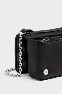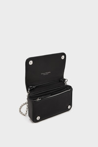 A compact evolution of the Glam Slam, this wallet bag channels the Maison’s idea of unconscious glamour through a quilted, pillow-soft exterior. Its structured form opens to multiple compartments, secured by magnetic fastenings and a polished zip. The chain strap and numeric logo tag add contrast — elegant, industrial, and unexpected. Product Details Item ID SB1ZI0014P6434T8013 Body: 100% Ovine Leather Application: 100% Calf Leather Inside: 100% Calf Leather Lining: 100% Viscose-Rayon Metallic hardware Chain-strap shoulder bag in padded leather Removable chain-strap Front flap Magnetic closure Chain shoulder strap Interior zip pocket Numeric signature tag at the side Made in Italy.