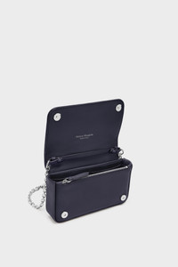 A compact evolution of the Glam Slam, this wallet bag channels the Maison’s idea of unconscious glamour through a quilted, pillow-soft exterior. Its structured form opens to multiple compartments, secured by magnetic fastenings and a polished zip. The chain strap and numeric logo tag add contrast — elegant, industrial, and unexpected. Product Details Item ID SB1ZI0014P6434T6460 Body: 100% Ovine Leather Application: 100% Calf Leather Inside: 100% Calf Leather Lining: 100% Viscose-Rayon Metallic hardware Chain-strap shoulder bag in padded leather Removable chain-strap Front flap Magnetic closure Chain shoulder strap Interior zip pocket Numeric signature tag at the side Made in Italy.