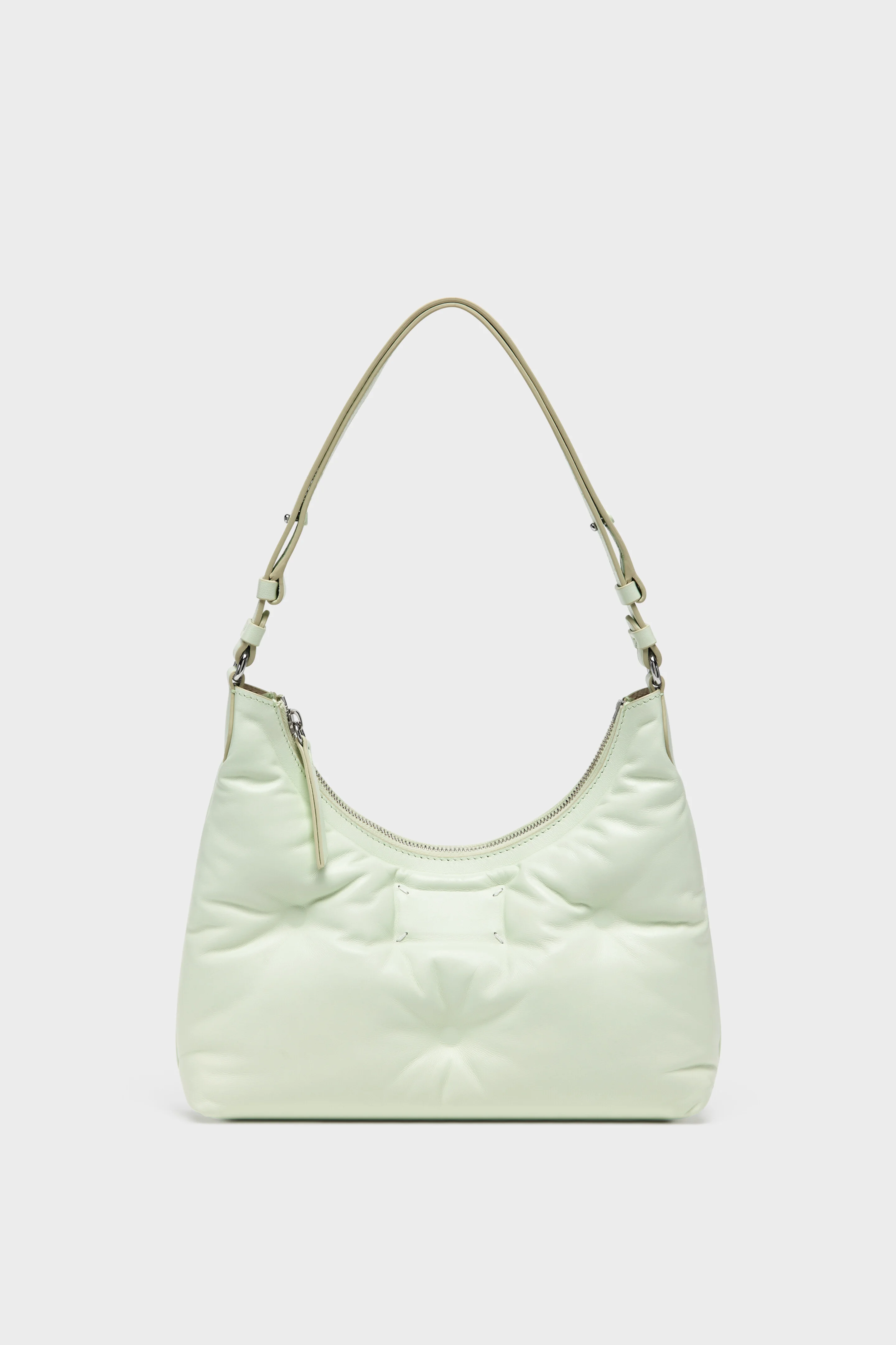 This bag interprets the Maison’s concept of unconscious glamour through a softly rounded hobo silhouette. Crafted in quilted nappa leather, the padded construction echoes matelasse — the hand-stitched quilting tradition of Marseilles, France — first introduced with the Glam Slam in the SS18 show. Designed to be carried by hand or worn over the shoulder, it offers a relaxed yet considered form. At the front, Maison Margiela’s signature, the four stitches, appear; the opposite of a label. Product Details Item ID SB3WG0024P8840T7374 Body: 100% ovine leather Lining: 100% polyester Inside: 100% ovine leather Metallic parts: 100% zinc Metallic parts: 100% brass Quilted nappa leather Adjustable shoulder strap Zip closure Four stitches at the back Inside logo stamping Made in Italy