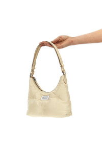 cod. SB3WG0024P4300T2354 'Glam Slam hobo small' quilted nappa leather shoulder bag, zip closure, front logo label, adjustable handle. Color: White Size & Fit: W 28 x H 21 x D 6 cm Composition: 100% lamb leather (Ovis aries) Made in: Italy