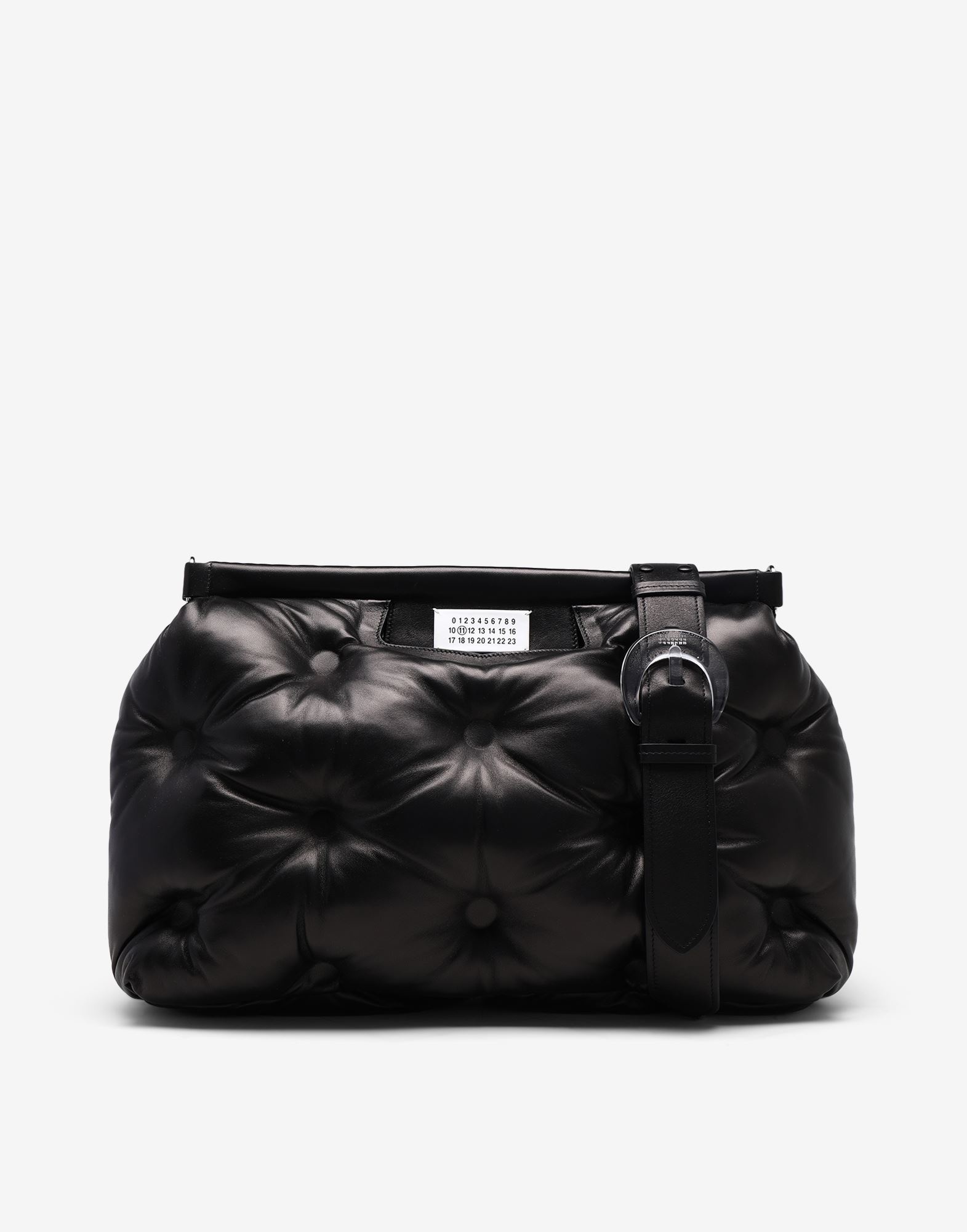 Glam Slam large bag in quilted soft plongé nappa leather. The Glam Slam debuted in the SS18 show and has a quilted design which mimics matelassé – the style of hand-stitched quilts created in Marseilles, France. The concept reflects the Maison’s notion of unconscious glamour and evokes its association to comfort, following the study into dressing and travelling rituals worldwide. The bag features a shoulder strap for multi-wear, and is adorned with the numerical logo label at the front. Made in Italy. Item details 100% Bovine leather, Polyester, Zinc Width: 17.6 inches Height: 12.5 inches Depth: 5.5 inches Leather Magnetic fastening Detachable shoulder strap Fully lined Detachable interior pouch