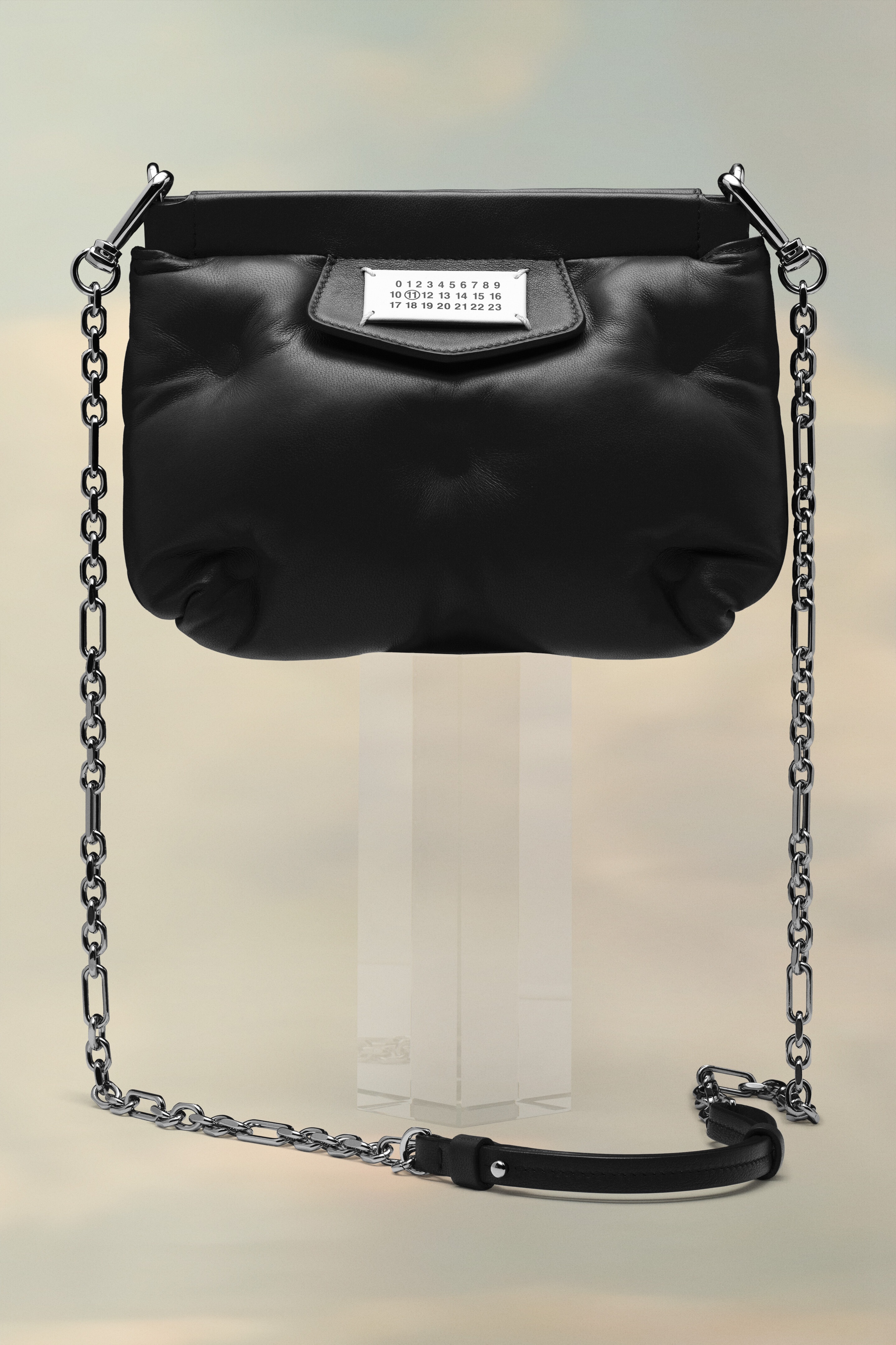 The Glam Slam red carpet mini is crafted from quilted nappa leather. The Glam Slam debuted in the SS18 show and has a quilted design which mimics matelassé – the style of hand-stitched quilts created in Marseilles, France. The concept reflects the Maison’s notion of unconscious glamour and evokes its association to comfort, following the study into dressing and travelling rituals worldwide. This style features a shoulder chain for multi-wear, and is adorned with the numeric logo label at the front.
