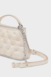 The Glam Slam trapezoid bag is crafted from embroidered nappa leather. The Glam Slam debuted in the SS18 show and has a quilted design which mimics matelasse – the style of hand-stitched quilts created in Marseilles, France. The concept reflects the Maison’s notion of unconscious glamour and evokes its association to comfort, following the study into dressing and travelling rituals worldwide. This style features a top handle, detachable chain shoulder strap, and is adorned with the numeric logo label on the zip pull. Product Details Item ID SB1WG0065P6434T2354 Body: 100% Ovine Leather Application: 100% Calf Leather Lining: 100% Polyester Inside: 100% Ovine Leather Accessories: 100% Polymethyl Methacrylate Metallic hardware Padded Crossbody bag Top handle Top zip fastening Detachable chain strap Numeric signature zip pull Internal pocket with mirror Protective feet at the base Made in Italy