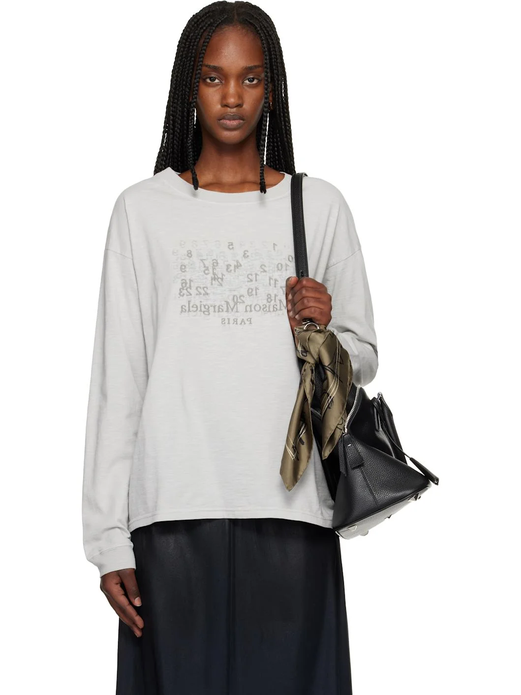 Cotton jersey T-shirt. · Rib-knit crewneck and cuffs · Logo and text printed and embroidered at chest · White stitching at back collar Supplier color: Pearl Grey 100% cotton. Made in Italy 261168F110000