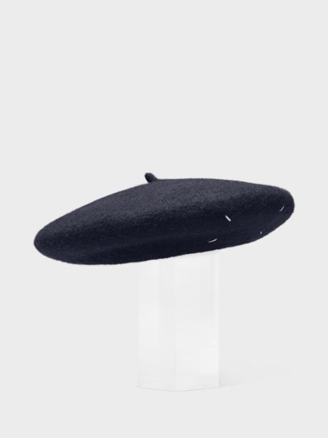 The classic beret in heavy wool, adorned with Maison Margiela's signature stitch; the opposite of a label. Product Details Item ID SI0TC0001S60384511 Composition: 100% Wool Felted wool beret Malleable to fit all head sizes Four stitches at the back Made in Italy The model is 178cm tall. Model wears size S.