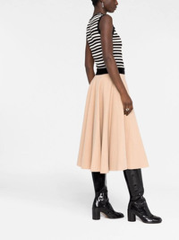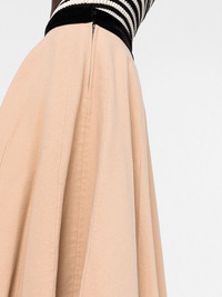 high-waisted pleated maxi skirt high-waisted pleated maxi skirt from Maison Margiela featuring beige, wool, fine knit, pleat detailing, elasticated waistband and maxi. Made in Italy Composition Wool 100% SIZE & FIT Model measurements Height 5 ft 10 in(1.77 m) Bust/Chest 32.28 in(82 cm) Hips 35.03 in(89 cm) Waist 25.19 in(64 cm) FittingInformation This piece fits true to size. We recommend you get your regular size Designed to be fitted at the waist and hips, loose over the leg Made with a mid-weight non-stretch fabric Washing instructions Dry Clean Only